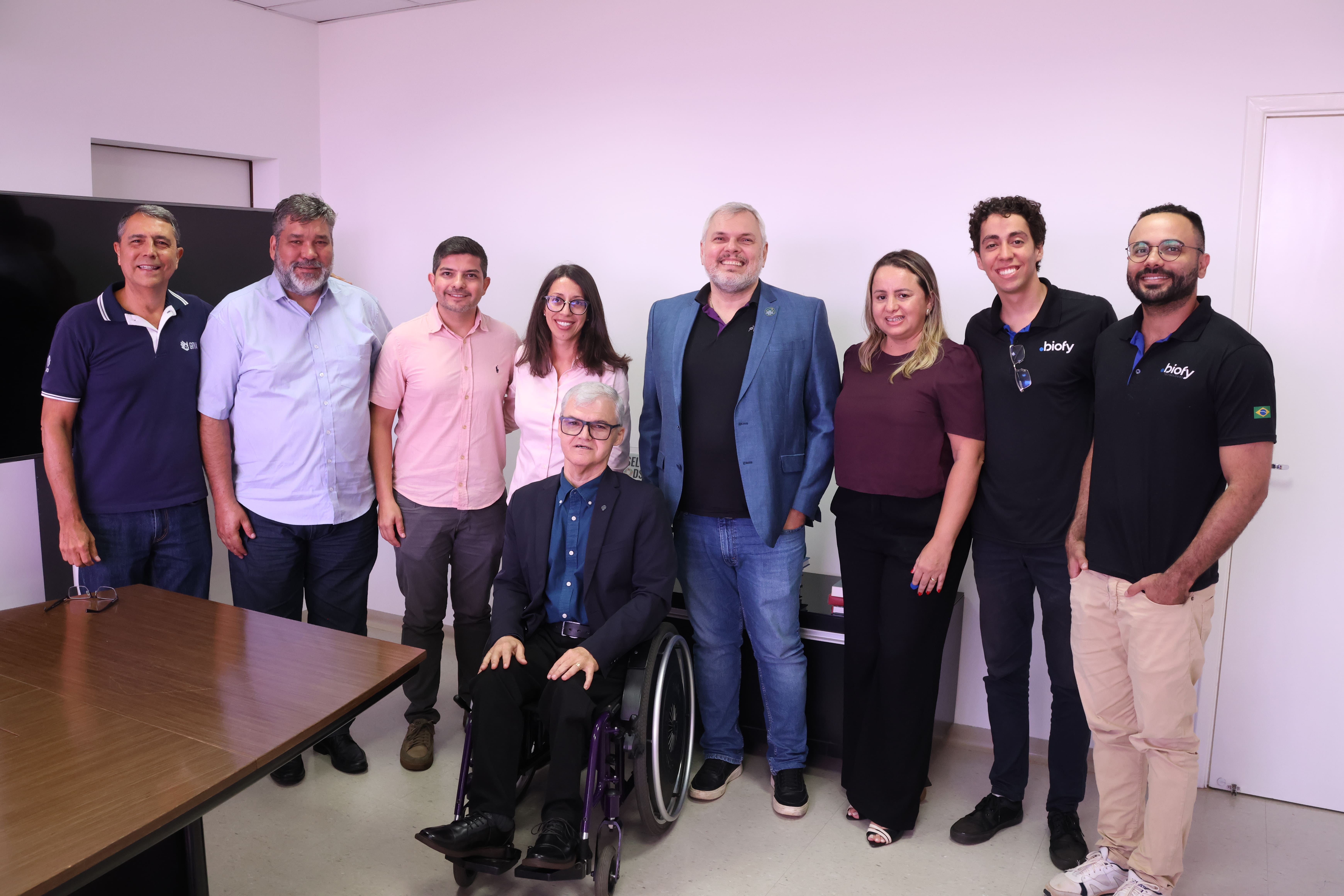 A assinatura da parceria contou com a presença do reitor da UFU, Carlos Henrique de Carvalho; da vice-reitora, Catarina Machado Azeredo; da diretora de Inovação e Transferência de Tecnologia da UFU, Luciana Carvalho; do diretor geral do Centro de Tecnologia da Informação e Comunicação (CTIC/UFU), Mauricio Cunha Escarpinati; do diretor de Sistemas e Websites do CTIC/UFU, Rafael Dias Araújo; do docente da Faculdade de Engenharia Elétrica (Feelt/UFU), Alexandre Cardoso; e do CEO da Biofy, Paulo Perez.