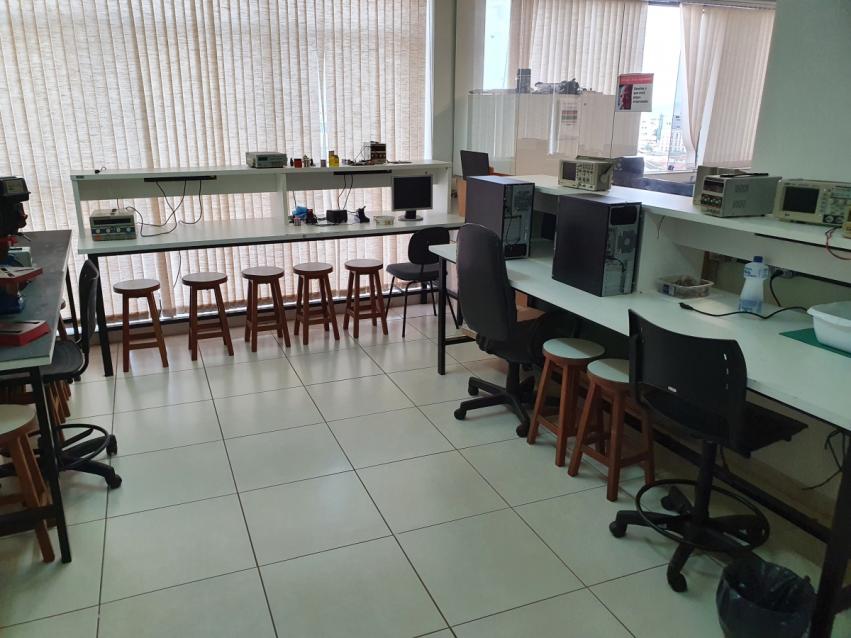 Conta com equipamentos de uso geral (geradores de função, fontes, osciloscópios), componentes básicos (resistores, indutores, capacitores, transistores, diodos, dentre outros), material para prototipagem, estação de solda, frequencimetro, e outros equipamentos de trabalho manual.